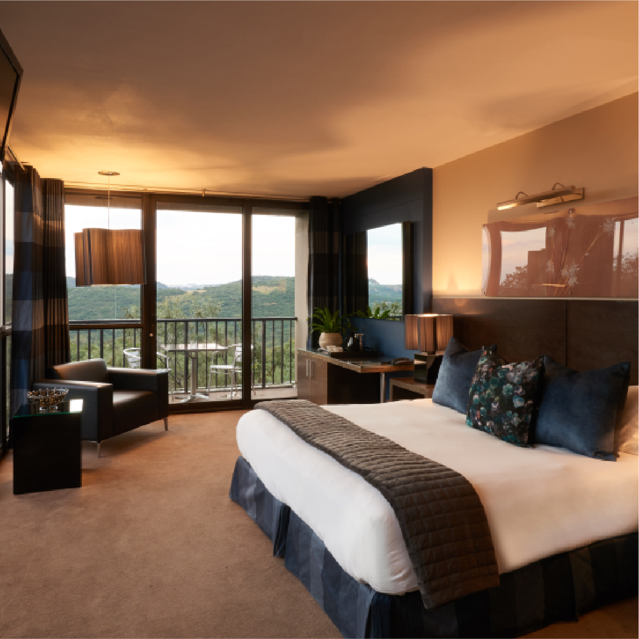 Our Junior Suites feature floor-to-ceiling windows, and private balconies, both with breathtaking views of the Klipriviersberg Mountains. Enjoy astonishing sunsets from the comfort of your own room, or take advantage of all our amenities.